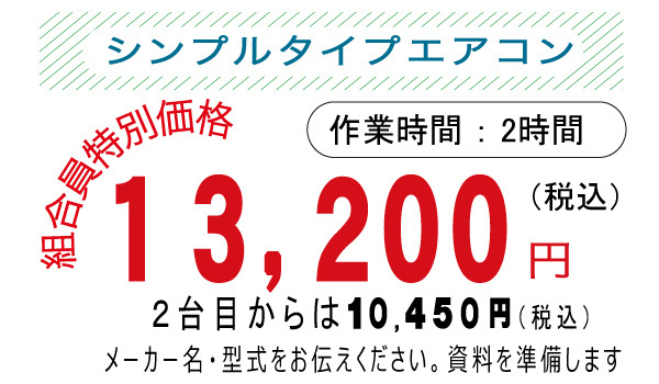 - 特殊な形や天井埋め込み型や据置型エアコンは、別料金になります。