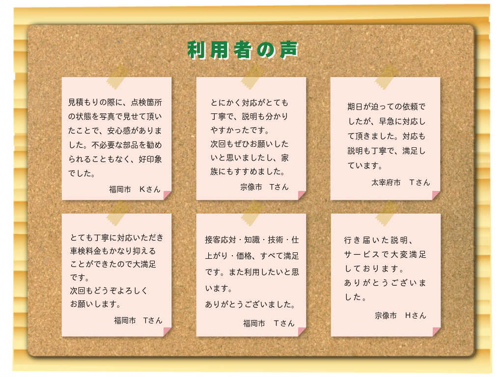 組合員様にしっかりご納得いただき、組合員様に合った車検をご提案します。