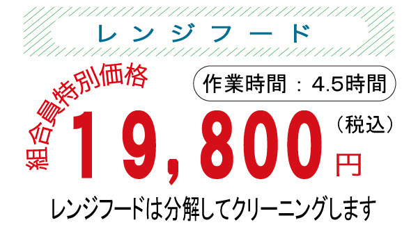 19,800円 | 4.5 時間 | ○レンジフードは分解してクリーニングします |