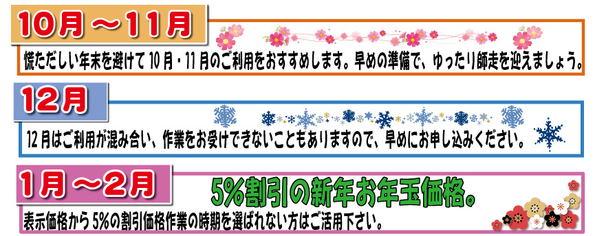 延作業時間 | 該当する項目が有りましたら基本料金にプラスになります |